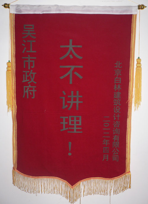 在漫漫的要账之路上,北京白林建筑设计咨询有限公司表示仍将继续前行。进入2012年,他们又陆续制作了三面要账锦旗,赠予吴江市政府,希望以此实际行动来为设计师争取到应得的利益。