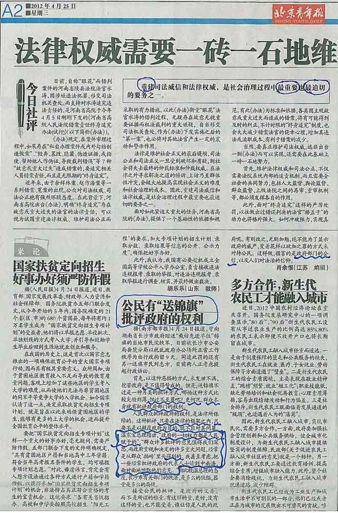 白林事务所剪报——公民有送锦旗的权利