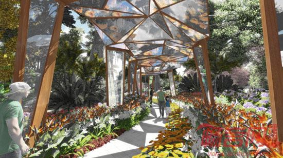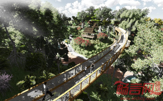 毕路德景观设计师强调了项目的复合功能,结合旅游度假、植物观光、科普教育、雨林茶室、广场休闲等多样性用途,并融入多国植物园区特色主题,极大增添了场所的吸引力。