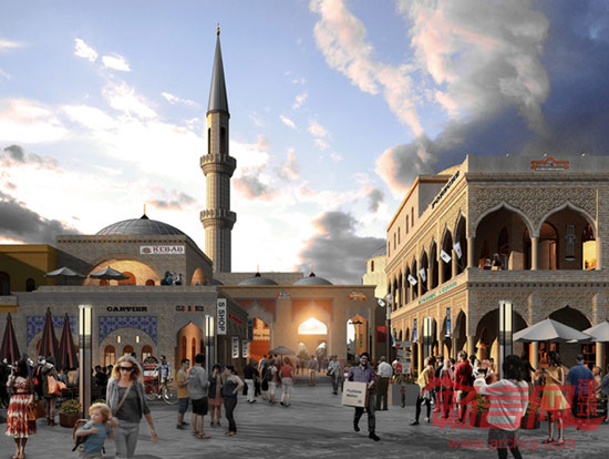 在规划设计中,毕路德建立了选择渗透性系统,将不同风格的建筑、景观群落连接起来。如1号岛风情商业街部分中,设计团队充分发挥了“规划-建筑-景观”三位一体的格局优势与塑造意境体验的综合能力,将16国风格各异的饮食街与商业街恰到好处的串联起来,同时对街道与海洋、堤岸的关系进行了专业细致的处理,营造出独特而有秩序的游览氛围。