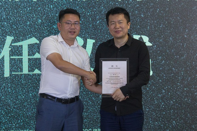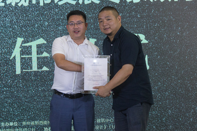 义龙新区党工委副书记、管委会副主任潘维维为艺术设计策展人、北京国际设计周组委会副主任、策划总监曾辉颁发聘书