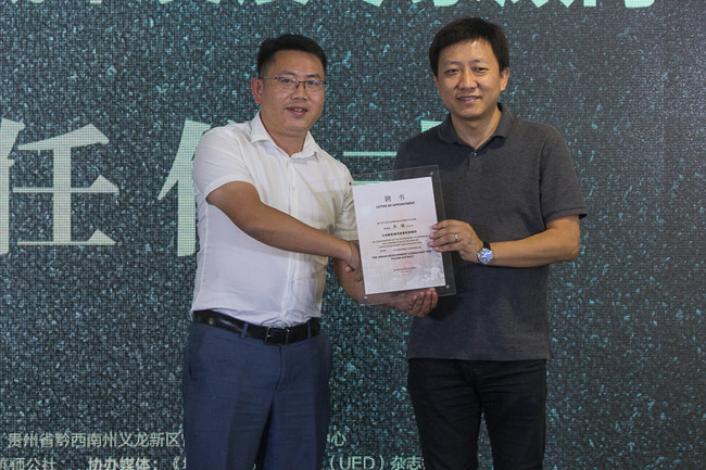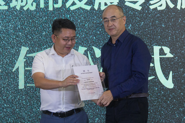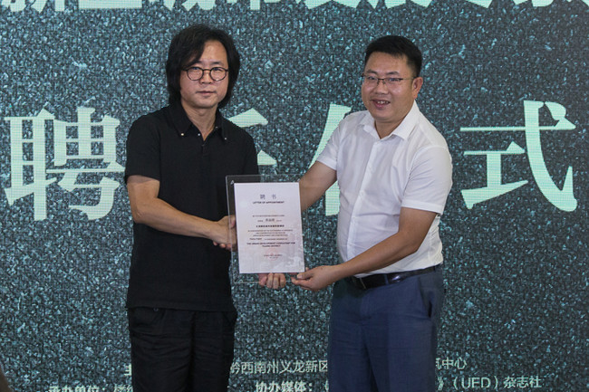 义龙新区党工委副书记、管委会副主任潘维维为当代著名建筑批评家,中国艺术研究院建筑艺术研究所副所长,《城市•环境•设计》(UED)杂志学术总监王明贤颁发聘书