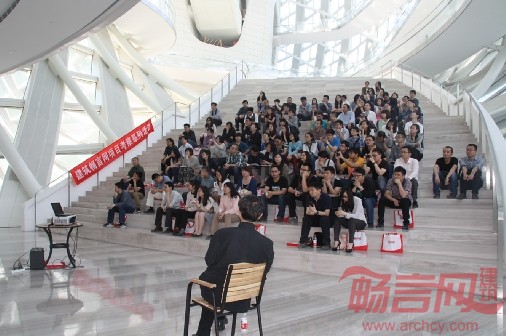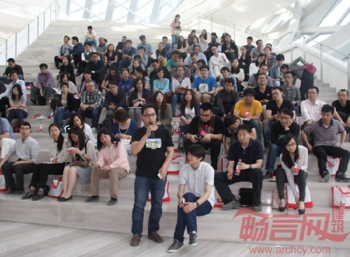 项目参观之后,邵韦平总建筑师为大家带来了一场深入的主题讲座,在讲座过程中,他针对凤凰国际传媒中心的设计特点和设计过程进行了深入的阐释,从设计概念、设计细节和基于BIM数字化技术实现的完美效果进行了深入的介绍,让大家了解了凤凰国际传媒中心的来龙去脉和设计过程中的各种问题及解决方案,让在场的建筑师了解了最前沿的建筑设计技术对建筑设计作品的重要作用。讲座结束后的互动环节,设计师们踊跃向主讲嘉宾提出问题,大家针对建筑创意、设计理念、数字设计运用、建安成本以及与甲方沟通等方面展开深入交流,活动在大家热烈的掌声中圆满结束。