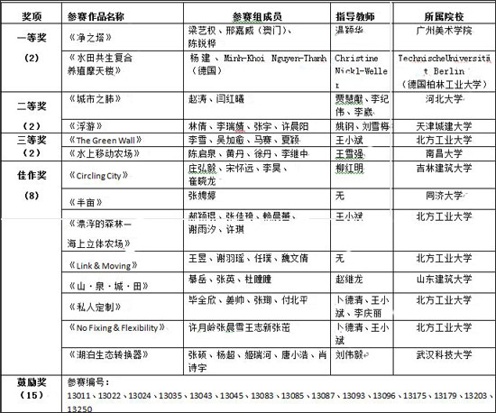 评奖过程秉承一贯的公开、公平、公正的原则,竞赛组委会将收到的全部参赛方案进行整理、核对、编号,隐去参赛选手信息再转交给评委们进行盲评。经过数轮严格、认真的评审和网上公示环节最终评选出14项入围作品,含一、二、三等奖各两项、佳作奖8项,另外评出较有特点的15项授予鼓励奖。这些作品极富创意和想象并从不同层面体现了当代大学生-未来的建筑师们对如何用建筑解决社会问题的思考。来自广州美术学院的设计团队提交的参赛作品《净之塔》和德国柏林工业大学参赛团队的《水田共生复合养殖摩天楼》力拔头筹,共同获得本次竞赛的一等奖。全部获奖作品将从即日起在北方工业大学建筑工程学院展出。同时,获奖选手已被列入博德西奥公司校园招聘计划候选人才库,博德西奥公司将为这些优秀人才优先提供实习、应聘机会。