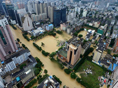 台风“鲇鱼”侵袭福州 航拍内涝中的城区