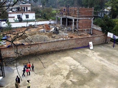 10月20日上午,在山阳县高坝店镇石桥村小学,偌大的操场中间用一堵墙隔成两半,一半是学生活动场所,另一半是一栋刚刚建设的村委会办公楼。学校的一、三楼用于村委会、教职工办公休息,二层学生上课。