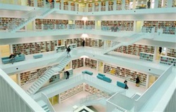 他山之石:德国斯图加特市立图书馆,全馆无直接照明,使用白色为主调,环型中空的通透设计凸显开放空间。