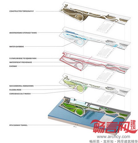 MVVA作品:布鲁克林大桥公园(三向投影分解图)