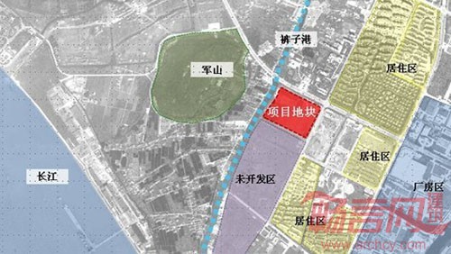 当面对南通的这块基地时,无疑是快乐的(图1)。似乎本就坐拥南邻长江、西朝军山的良地,或似一副优美山水画卷中的一个小款。当面对真实的尺度时候又难以起笔:长江口宽大如海,且有近30分钟车程不能与基地构成所谓的图景;车山虽近在眼前,却只有突兀直接之感,过于平整的场地并没有与山发生实质的关系。好在拿到手里的规划图令人欣喜,:地块西侧由一条名叫“裤子港”的水系通过,在视觉上阻断通向军山的路;北侧星湖大道为城市主干道,主次入口均设置在东侧的通富南路。在地块北侧、西侧的地块外侧留有城市公共绿地(图2)。