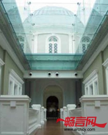 b、中庭使凉空气能通过建筑的过度空间。