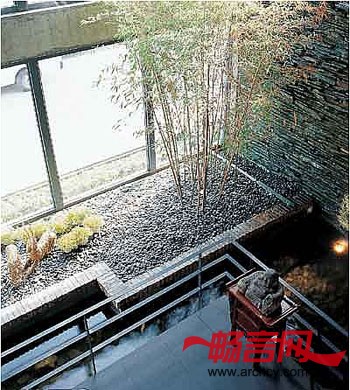 由 于植物能够吸收二氧化碳, 清除甲醛、苯和空气中的细菌,形成健康的室内环境,具有生态美学方面的作用。因此扩大绿化,把绿化、庭园引进室内环境是室内生态设计的重要内容。目前发展 起来的腐植土生成技术、防水处理技术、无土栽培技术等都为室内绿化提供了技术上的支持。在室内增加绿色植物也是室内减噪的有效办法,植物既能对室内空气起 过滤作用,为室内补充足够的氧气,同时也可为室内环境提供良好的吸声减噪效果。室内绿化是多层次的。