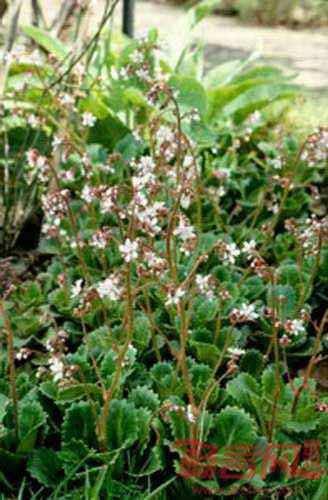 R:虎耳草,一种贴地的蔓生植物,开可爱的粉色小花。
