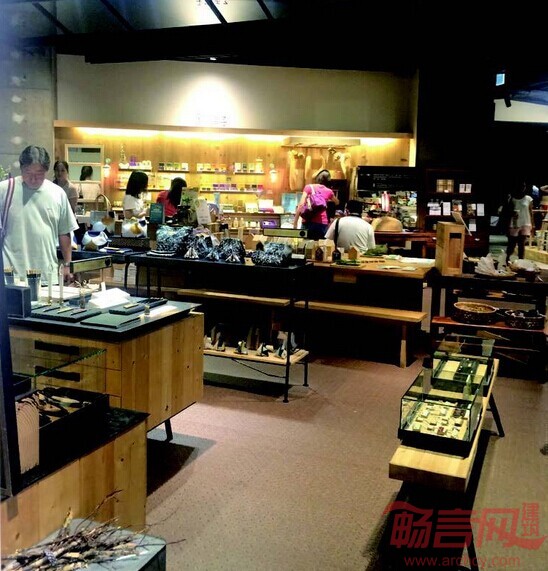 上海K11、北京侨福芳草地都是以文化为主题的商业,多体现在环境或业态上。而在诚品,消费者从入店开始就被带入文化小清新的氛围中,体验着上世纪九十年代起的台湾美学风。首层是“极时尚”服饰零售店,多为设计师品牌,店铺大色调以米黄、木色等柔和色。店铺不以最大展示面积为目标,突出文化场景,提高体验感的真实性。