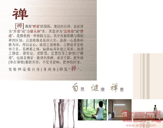作为概念汇报需要在开始的时候说明设计的方向与理念。剑兰阁本着创造禅意空间的宗旨通过关键词、表达感受的图片以及必要的名词解释将汇报的思路引入正题。