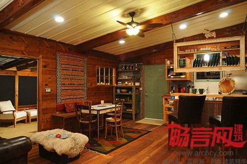 Tracen Gardner:有很多种木材可以回收利用,而且这些木材都很漂亮,它们大多采自原始森林,因此非常独特。另外,每一块木材背后都蕴含着很多故事:它们从哪里来、那里生活着什么人、那里发生了什么等等。每块木材的来源都耐人寻味,有的来自一座老教堂,有的来自一个啤酒厂,有的来自侍从居住过的棚屋,也有的来自某位邻居的老房子或者旧家具。这些用废弃材料搭建的房子,通常更能代表主人的个性特点。