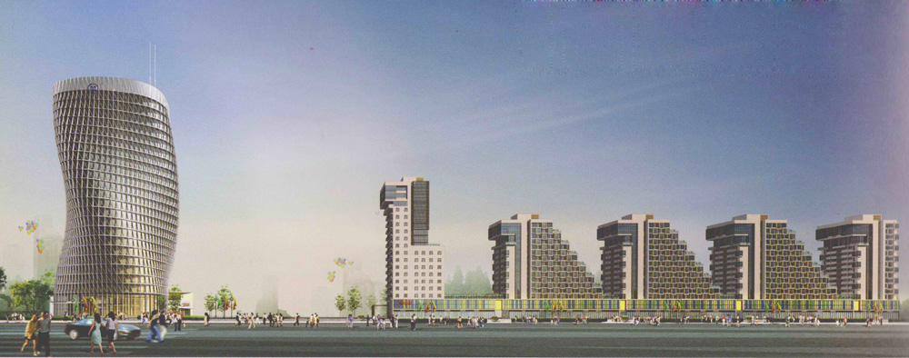 这是位于北京市正南大兴区被称作“龙凤呈祥”的“地标式”建筑群。媒体上的文字介绍是:“18号、28号地块的落成,为大兴城市天际线增添了优美的弧度。”又称“龙凤呈祥的意象也昭示着大兴经济与文化的腾飞与繁荣。” 但明白人怎么也看不明白:把一字形排开的建筑,生硬地拼凑成“龙头、龙身和龙尾”,怎么就和“优美”联系起来了?图面左侧双曲面造型隐喻为“凤”的北京兴创大厦,也因比例严重失调、扭抳造作,而在畅言网2013年全国十大丑陋建筑评选中名列第二……