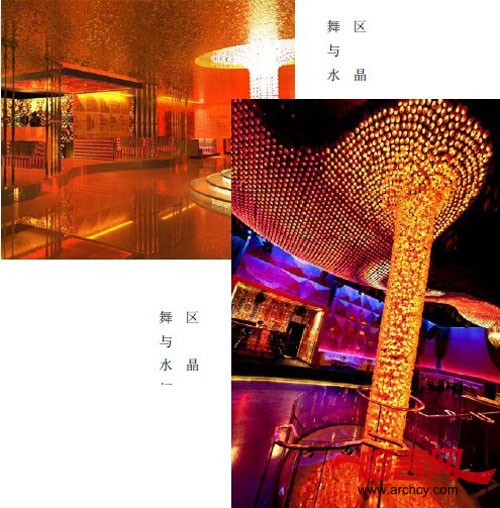由此可见,名利场(Vanity)的目标是便创造一个感官主义者的游乐场。既然设计师要在这里创造一个有着很多层次的奢华珠宝盒,其风格必然脱离不了新古典主义的轨迹,但同时又是绝对现代而时尚的。Mr.Important 的设计灵感源于珠宝,他们希望室内的装饰和家具的主调是各类新现代主义风格的自由混搭,又有许多古典元素掺杂其中,意在唤起上世纪七八十年代的回忆。置身其中,华美奢侈的复古气息扑面而来,而由大型计算机控制的流云状吊灯调光系统又为空间打造出浓重的现代感。(见下图)