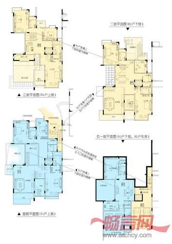 何为别墅?一个刚入行的新手也可以回答你,“见天着地”,也就是单独入户,有入户的前花园,私家车位,屋顶还有大露台,再豪一点,楼上下有私家电梯。如果我设计的住宅拥有以上所有的特点,是否算是豪华别墅?我也不肯定,因为A2-1~A2-3栋这几栋和联排别墅一样都是并排拼接的,只是随这地型前后错拼。但不同的是因为把两套住宅上下叠在一起,每一户拥有12.6m的大面宽,使更多的房间面对南向,也就更多拥有公园美丽的景观,同时每户都拥有了宽敞的双车位私家车库。因此虽然每户只有两层(上层住宅也拥有私家车位),面积不是很大,但至少可以定性为比联排别墅还豪的豪华住宅。我也就替开发商造个噱头,叫做叠合别墅。
