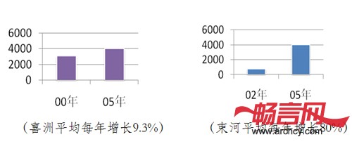 如今经济文化教育水平低下,72%为初中及以下水平,且以种地为主。2000年时,喜洲镇年人均纯收入3000元,束河不到1000元,至2005年两者已相当,都达4000元,除去通货膨胀影响,喜洲镇人均收入未有实质性增长(图4)。