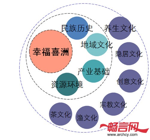 充分挖掘喜洲镇资源价值,从其民族历史、地域文化、产业基础、环境资源升华衍生出养生文化、隐居文化、宗教文化、渔文化、茶文化、创意文化,为进行差异化品牌竞争创造基础(图7)。