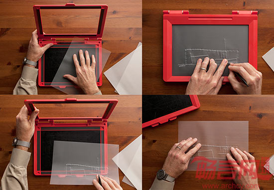 我现在仍然绘图,使用带有凸起线条的绘图工具,表面是薄迈拉膜的橡皮板。绘图使用无墨特氟龙笔尖,落笔后线条会凸起。难度在于不能在图像上方附加线条。我后来改用一套工具,可以将线条转变成一系列凸起的小点,诀窍是绘图要尽量简洁,否则会造成理解混乱。通过手指读图和用眼睛看图完全不同。一个是一眼窥见全貌,另一个是从局部到整体。练习一阵子,我逐步产生了手指和大脑的神经连接。我也开始学习盲文,这当然很有必要。