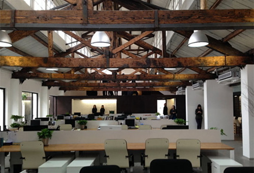 在离同济大学不远的地方,我们划了一个3公里的圈,在这个三公里圈内找了这样一栋老的厂房,这个厂房一直作为工业用途在用,我们要把进行民用化的改造。这是我们自己的工作室,所以我们介入的态度第一个叫做模式的规避。我们希望既有的空间适合我们新的使用状态,但是在使用状态当中,跟日常所谓的办公空间会有一些不一样,跟日常的厂房工业化的改造会有一些不一样。这是我们改造完的状态,从我的办公室在阁楼上面可以看到一个院子,这些木粱都是经过我们打磨挖掘以后,把木头本身的魅力重新呈现出来。很多建筑师去看了以后,感觉到这些木梁实际上在它的历史时间沉淀下来的魅力,是一些新的建筑所没有办法实现的。