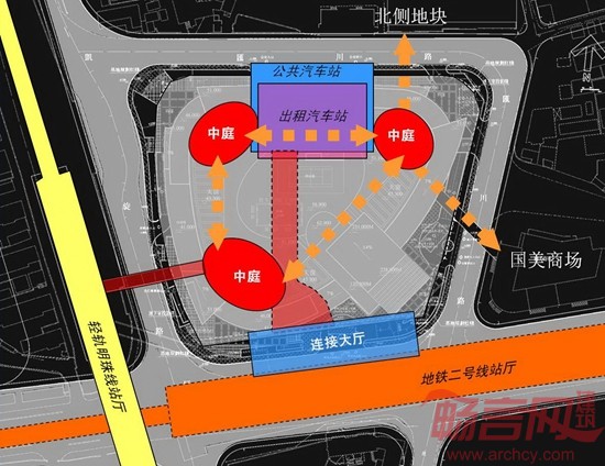 04.1 上海龙之梦通过三个中庭将轨道和交车站进行环形连接