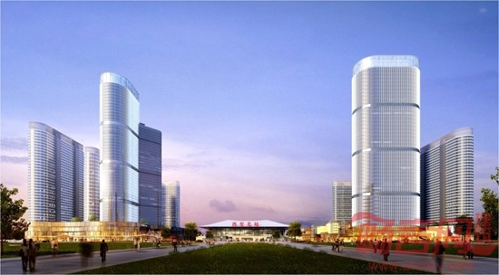 10 西安龙之梦城市天际线与高铁站房形成环抱关系