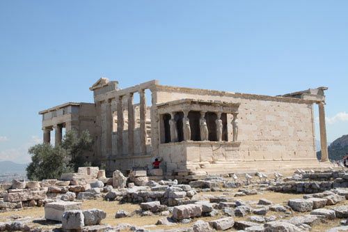 雅典古城内文物古迹十分丰富,有卫城、宙斯庙、奥林匹克运动场等。政府有关方面不但保护了这些历史古迹本身,对周围的环境也实施了严格的保护管理。首先是高度控制,雅典全市高层建筑不多,在卫城周围的建筑更是远低于卫城的山丘,全城非常突出地显出两座山,一是圣乔治山,另一个就是卫城,这使得卫城明显地处于全城的主题地位。宙斯庙是雅典最大的神庙,有160根高大石柱,现只归位复原了部分石柱,但其遗址已全部清理,显示出宏大的规模和雄伟的气魄。正是由于这里主要展示的是遗址,所以四周的高度控制非常重要。在控制建筑高度的同时,对周围建筑的使用并不加限制,有居住区有商业街,内部设施经过改造,外表保持传统风貌。卫城入口前的一条商业街,底层全部为饭馆、酒吧、小商店,二至三层住人,这里虽不是古希腊的风格,但建筑形式富有地方特色,全街格调统一,故很受旅游者的喜爱。现在希腊政府正在实施一项新的计划,由文化部和公共工程部共同组建的雅典古迹联盟公司负责操作。计划准备将雅典的六处文物景点联成一条游览线,整修其间的道路,整饰清理两边的房屋,挖掘清理展示这一线上的地下遗址。值得注意的是他们对两侧房屋的处理方式,他们只将那些十分有碍观瞻的房屋拆除,对那些建筑高度、形式无大妨碍的建筑则予以保留。尽管这些房屋下边压着文物遗址,但据规划设计人讲,这些房屋是很久以前建的,有合法的批准文件,如要拆除需付大笔赔偿金,所以可以留待以后慢慢处理。在对文物环境没有造成不可容忍的损害的情况下,这种实事求是的态度减少了保护文物与现代生活的矛盾。