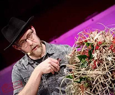 尤根很想把自己求学时老师的一段话分享给学员:模仿别人作品的,是工匠;在模仿的基础上创新,是有创新精神的工匠;只有当你通过作品传达信息时,才是艺术家。谈到创作秘诀,尤根说本质就是作品的冲击力。花艺中所有的重要元素,例如形状、色彩、材料等都是用来创造冲击力的手段。
