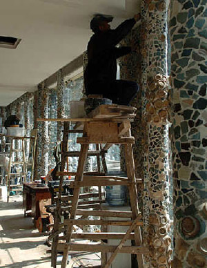 “瓷房子”是天津租借时期所修建的一座法式建筑,曾因年久失修闲置10余年,后天津收藏家张连志将其买下后,自2002年开始改造装饰。张连志介绍,中国各朝代各窑址中的瓷片几乎都能在“瓷房子”见到。