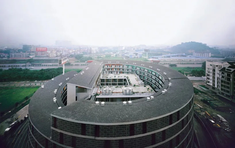 刘晓都:它有意思的地方也是在这里。比如说你要做一个豪宅的话,你在广州也好,在深圳也好,实际上已经有无数个开发商在做了,他已经积累了无数的经验,所以他们就开始形成了一种“定式”。你要走这个路,因为它是市场化的,你就需要认同所有人都认同的一个默契,甚至在审美上都有一种默契。你要这么做就没有问题了,就应该能卖出去了,而那么做就卖不出去了;户型这样做好卖,那样做就不好卖……当然也是不断有人在突破一点点,但是它永远是在一个相对清晰的方向上和范围内往前发展。但是呢,我们开始做低收入住宅,我们在做土楼这种实验性的东西的时候,因为万科作为开发商没有太多低收入住宅开发的经验,他只能任你去做。王石之前先有了一个概念,他看见传统土楼民居,从功能的角度去看它特别像宿舍,单元式布局,长外廊,就像宿舍一样,这东西能不能变成一个所谓低收入住宅?它只是一个想法,但是非常敏锐。开始万科也曾经找来三、四个建筑师来做概念,而我们做的东西被他们接受了。这个设计不是以一个民居为蓝本去做,实际上它只是借了一个壳,最终我们还是要针对现代的问题,做一个现代的建筑。这个思想我们从来没有动摇过,也从来没有犹豫过,传统民居的土楼具有一个现代的可能性,我要借用这个东西,把它转移到现代的场景里头来。其实由你来解释这个问题很合适,就是场景,一个老东西搬到新的地方来,它的什么状态才合适。比如说万科从浙江还是哪里买了一个老房子,运到第五园去,就原封不动地造起来了,然后拿个玻璃盒子套起来,特别像放在一个珠宝盒子里当展品。这是一种死的方式。它也许形成了一个空间,但我觉得那个场景、那种变化,跟我们的这种变化还有很大的差异,甚至是根本上的差异。