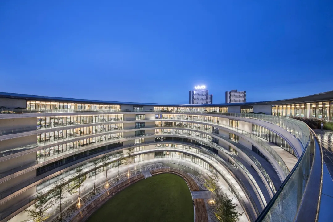 vivo总部位于东莞市长安镇的工业区,包括主办公楼、实验楼、综合楼、3栋塔楼公寓、接待中心和2栋停车楼等9栋建筑。与大多数企业总部不同,vivo新总部承载了几乎全部的生活场景,其包含了《雅典宪章》提出的现代城市功能四要素——“工作,居住,游憩,交通”。园区类似一个小的城市聚落,理顺数十条交通流线,也是在梳理生活的全部可能性,做到宏观统筹和精细化设计相结合。
