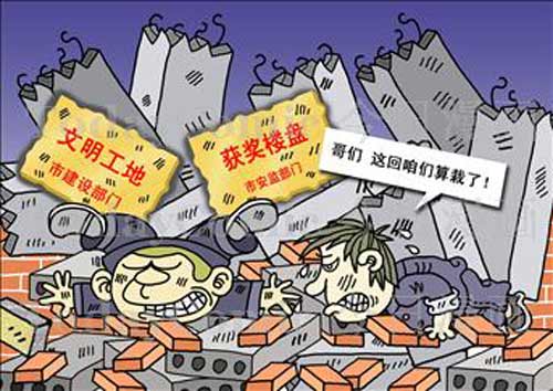 近一两年来,让国内公众诟病的在建工程倒塌、坍塌事故层出不穷。近的有昆明在建新机场立交桥垮塌,造成7人死亡34人受伤事件;稍远些有河北某地在建电视塔因雷雨而倒塌;还有一干“楼脆脆”、“楼歪歪”、“桥裂裂”、“桥糊糊”……这些问题偶有为之,属于个别承建者责任心问题,如果大量出现,恐怕已涉及整个行业风气和建筑施工者整体诚信问题……