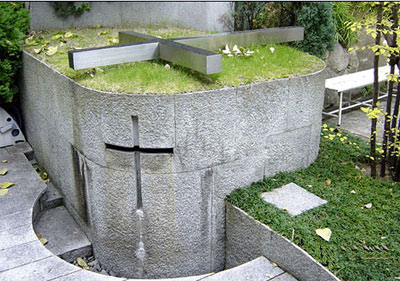 光之教堂的区位不如风、水两教堂来的得天独厚,受到场地和周边建筑风格的影响。设计的重点转移到内部。空间以坚实的混凝土墙所围合,创造出绝对黑暗空间,阳光从墙体上留出的垂直和水平方向的开口渗透进来,从而形成著名的“光的十字架”——抽象、洗练和诚实的空间纯粹性,达成对神性的完全臣服。沉溺于安藤神话的想象与忏悔,置身其中浑然不觉时间的流逝。