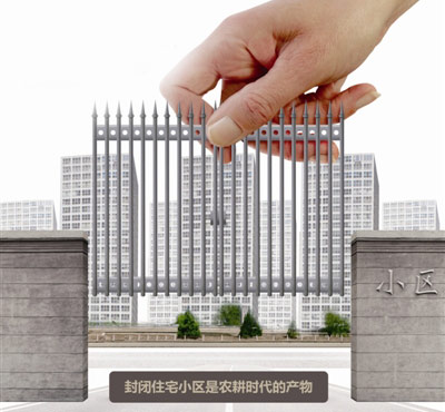对于争议较大的“小区打开”,仇保兴表示,交通进入口袋,没有通路,没有穿插,这种口袋式设计对人口密度一个平方公里低于1000人的地方是一个好的城市,对于一个一平方公里一万人的地方那就是一个毒药,中国就是服了这个毒药,用口袋式的设计搞了许多社区,造成了整个毛细管全部的拥堵。