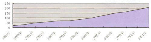 此外,莫斯科市政府通过各种渠道吸引投资,专门用于城市给排水系统的建设上。从图3中可以看出,从1998~2011年间,莫斯科每年都投入一定比例的资金完善现有的给排水系统网络,13年的时间里,投资额翻了10倍之多。到2020年,随着房屋、热电厂和其他种类建筑的建设规模不断增大,政府将进一步加大莫斯科城市给排水系统建设的投资力度,以满足甚至超额满足城市日益增长的给排水需求。