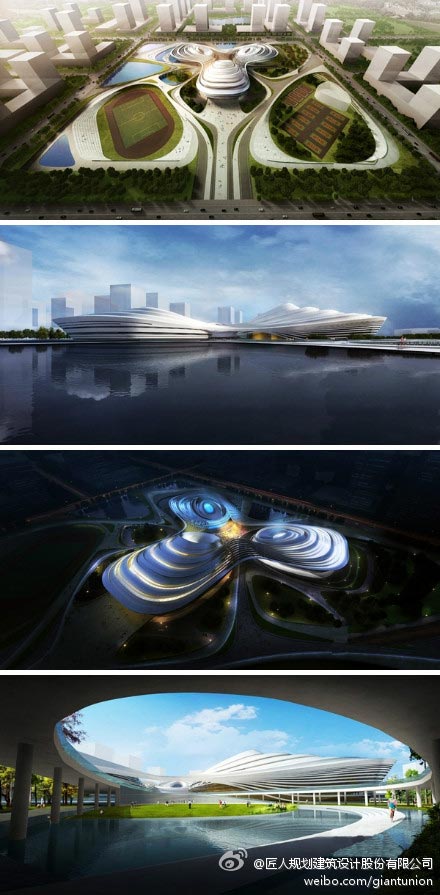 三角形的建筑将包含一座体育馆,水上设施和训练中心,它们与屋顶和立面连为一体。三个建筑体量之间所形成的区域被设计成带顶棚的户外庭院,将举行一系列活动,并与主体建筑结合,将体育中心打造成一个集文化与功能实体于一身的建筑综合体,一体化的交通流线设计也非常独到。