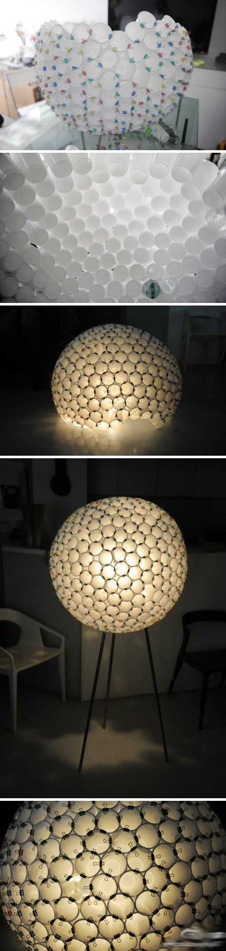 i-fang作品《非常界---塑料杯灯》。以前曾经用废一次性纸杯做过这样的灯,但时间久了纸杯受潮变形,无法长久保存和使用,这次就用塑料的一次性杯子,应该能长久使用。