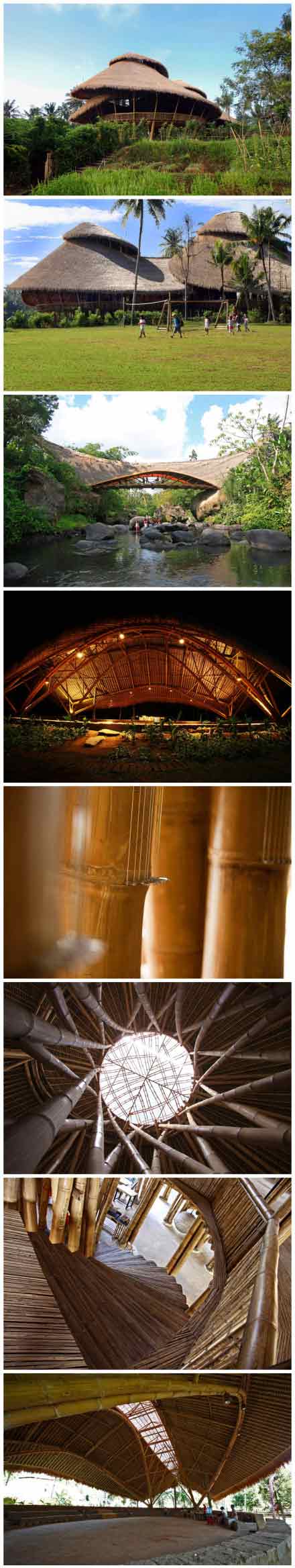 珠宝设计师及商人 John Hardy和妻子Cynthia在巴厘岛兴建了一所“绿色学校”。学校完全以竹为材料,由巴厘岛公司PT bamboo pure负责建筑的技术设计。建筑以开放形态坐落于树林中,功能空间以螺旋形向外辐射。