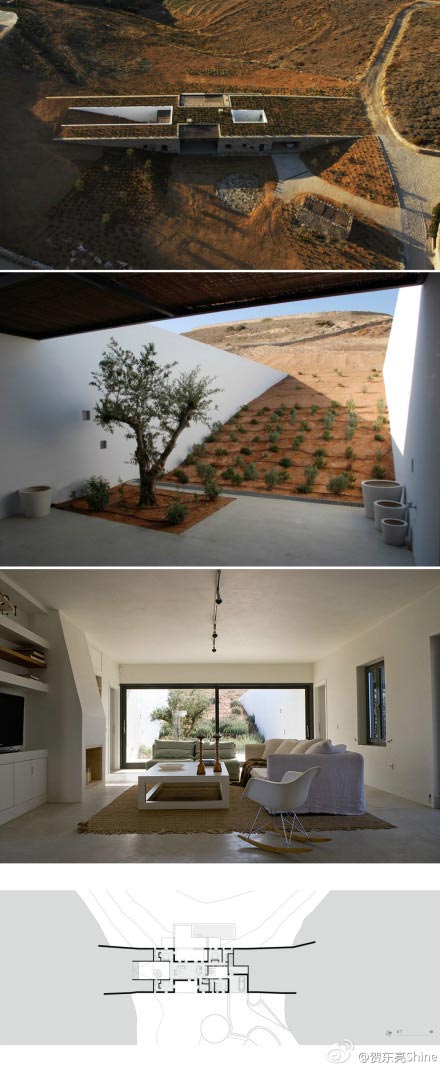 与山谷地势结合的希腊别墅方案,既顺应功能主义,又不破坏视觉环境。
