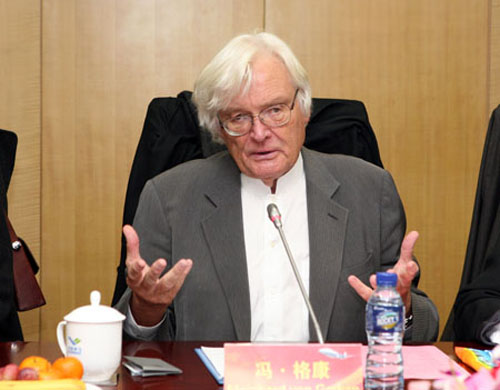 冯·格康,世界五大建筑事务所之一德国GMP国际建筑设计有限公司的创始人和当家人。今年74岁的他,头发完全花白,中气却很足,说话声音特响。