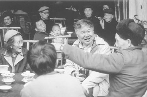 在小区里漫步,他跟人友善地打着招呼,唠家常,跟邻家老大爷没两样。