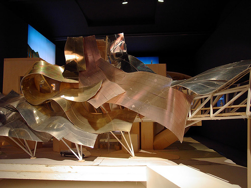 古根海姆博物馆是盖瑞和陈日荣的共同挑战,“以前接的案子都倾向于功能性,设计比较方正,但这次是个大型美术博物馆,允许我们做美学上的尝试与追求。我记得当时我们看了一个艺术展,法国大师亨利·马蒂斯的剪纸艺术,这点燃了我们的灵感,我们就打算用剪纸的形式去做这个建筑。”