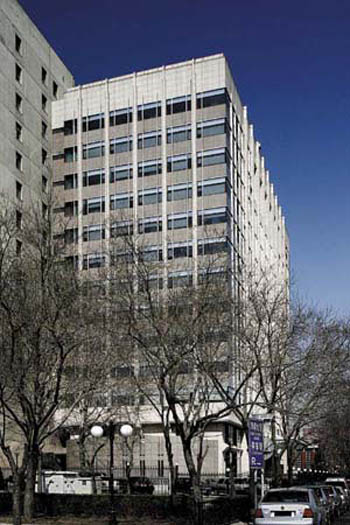社科院图书馆是配合社科院主楼的一幢东西向建筑。社科院主楼是一个南北向的大板楼,始建于1982年。“这个建筑位于长安街的黄金地段,规划部门对它有很多要求。作为附属建筑,它的建筑体量远远小于主楼,风格统一,我们在设计的时候特别注意和环境的协调。”解钧以此为前提和规委、业主协调,“颜色啊,窗的比例、线角等基本都和主楼统一,但在此基础上又做了新的东西,比如说用石材代替涂料,拿金属来装饰线性角等等。”
