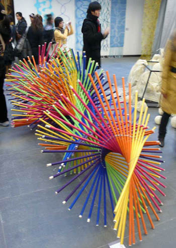 另外,张月并不完全赞同一些艺术家所提倡的先锋和前卫,因为先锋和前卫也应关注社会亟待解决的问题。设计是有道德的,设计师不应只关注自己专业范围内的东西,而应该关注社会问题。设计与艺术不是一回事,艺术家可以自娱自乐,但是设计师要有社会责任,要解决社会问题,必须关注社会。对于学校来讲,首先要有社会责任感。