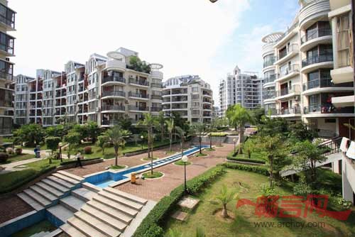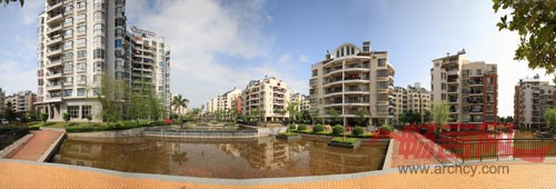 振宁翠峰小区按照现代城市园林住区的理念,整体布局依据自然地形,绿化景观与水体景观相配合,营造地中海风情景观;建筑采用多层住宅造型以部分坡屋顶造型塑造小区居住温馨氛围,小高层住宅以重复韵律、细部的深入刻画体现精致与轻巧,同时选用地中海建筑的阳光色彩;建筑群体布局以中轴景观步行街为脊索,各组团建筑分置于其两侧。中轴景观步行街曲线型布置,使得建筑群体关系既有对称布局的严谨与庄重,又不失曲线构图的轻松与活泼。项目独特的地块内高差采用内部小台地式、周边坡道式处理方式,内部台地与建筑及庭院环境紧密结合,周边坡道式处理与外围环行车道相统一。以实现既方便住户行车又顺应地形、塑造丰富地形景观。