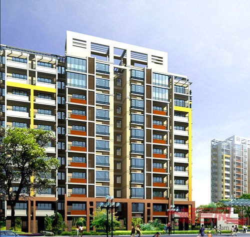 住宅造型给人以挺拔、轻盈之感。其水平、垂直向的构图穿插组合及立面美学富有强烈的现代气息,轮廓线丰富的屋顶构架和竖向建筑语汇勾画出了立面韵律。整个住宅立面的设计中,平窗、低窗、阳台、栏杆、空调板和屋顶构件等的设计着重于整体效果而不失细腻风格。