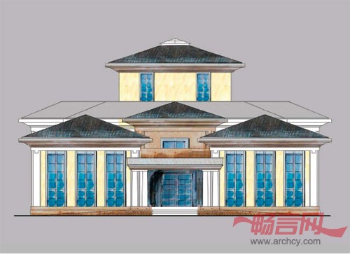 保持原建筑群白墙红瓦的基调,简化装饰,调整门窗及风雨廊的尺寸比例,重塑稳重大气的立面
