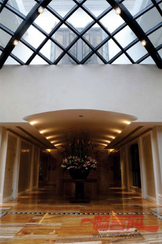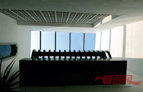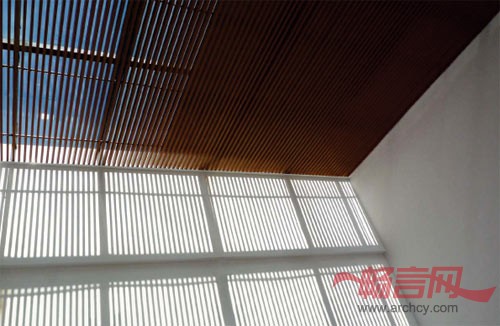 原建筑楼层低矮,加建两层高的门厅,丰富了空间的层次